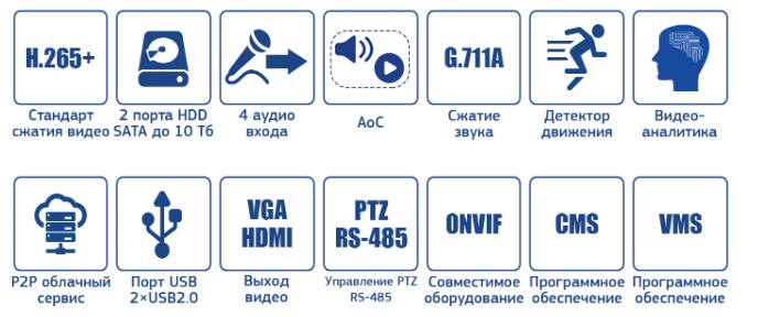 HVR режим (камеры: AHD, TVI, CVI, аналог и IP-камеры) 16 каналов HD 8Mп + 16 каналов IP 8Mп