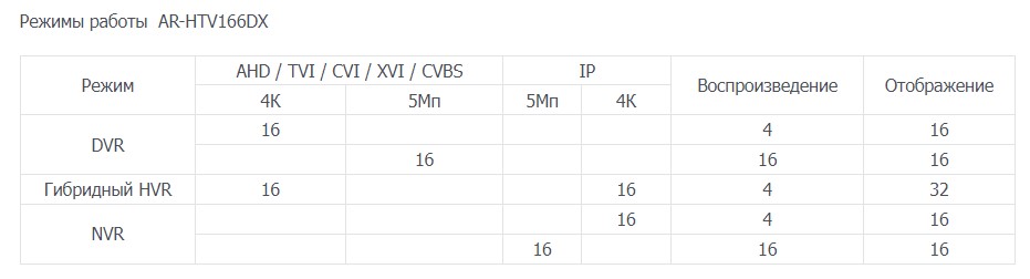 HVR режим (камеры: AHD, TVI, CVI, аналог и IP-камеры) 16 каналов HD 8Mп + 16 каналов IP 8Mп