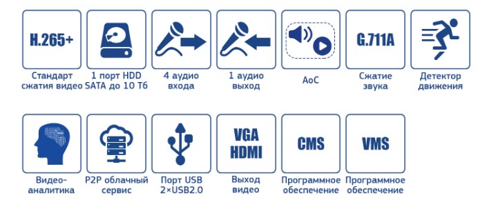 NVR режим (IP-камеры): 8 каналов 5Мп, 16 каналов 2Мп (1080P)