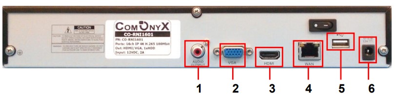 > ComOnyX CO-RNI1601 - 16 канальный сетевой видеорегистратор для работы с IP-камерами до 8Мп. Имеется возможность установки жесткого диска до 8Тб для записи архива. Регистратор способен производить одновременный вывод на монитор иcпользуя разъемы VGA / HDMI с разрешением до 4К. Реализована возможность одновременного подключения по сети для онлайн-просмотра и просмотра архива с помощью ПО CMS, а также подключение с мобильных устройств с помощью облачных технологий P2P и Cloud. Питание осуществляется от источника постоянного тока 12В.