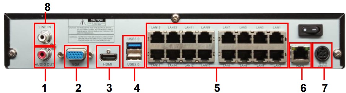 | 5 | LAN1-LAN16 | Порт RJ45(PoE) |