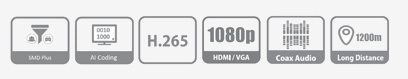 - Вход камеры HDCVI 1080p при 25/30 кадров в секунду, 720p при 25/30 кадров в секунду
