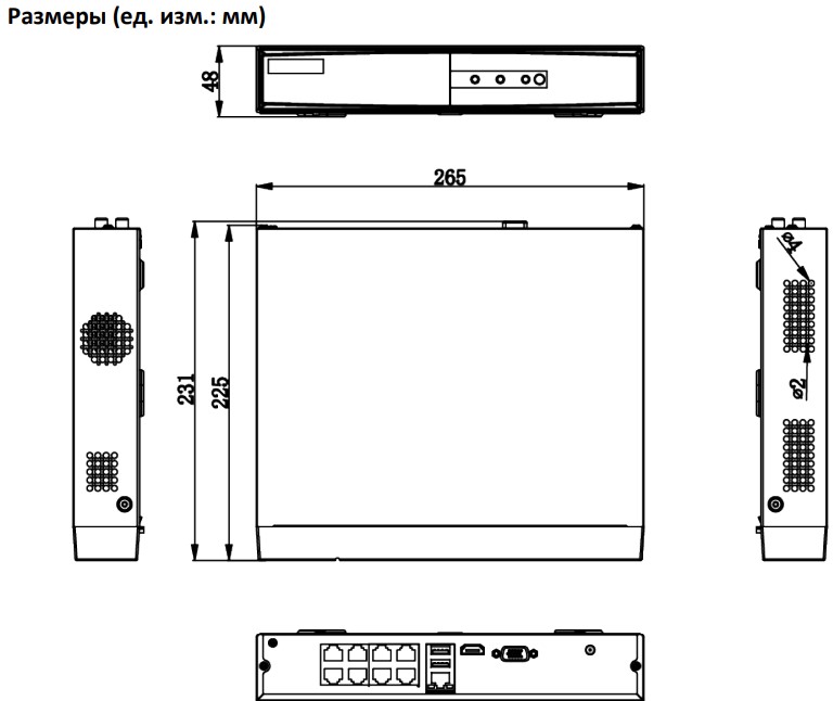 - Воспроизведение видео с разрешением 4 Мп (2 канала) или воспроизведение видео с разрешением 1080p (4 канала)
