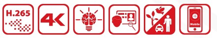 • Стандарт сжатия H.265+: экономия места на диске, снижение затрат на 75 %