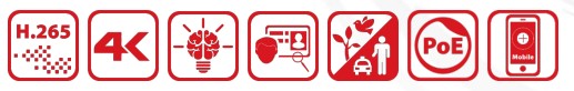 • Стандарт сжатия H.265+: экономия места на диске, снижение затрат на 75 %