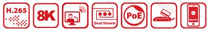 • Стандарт сжатия H.265+: экономия места на диске, снижение затрат на 75 %