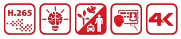 - Стандарт сжатия H.265+: экономия места на диске, снижение затрат на 75 %