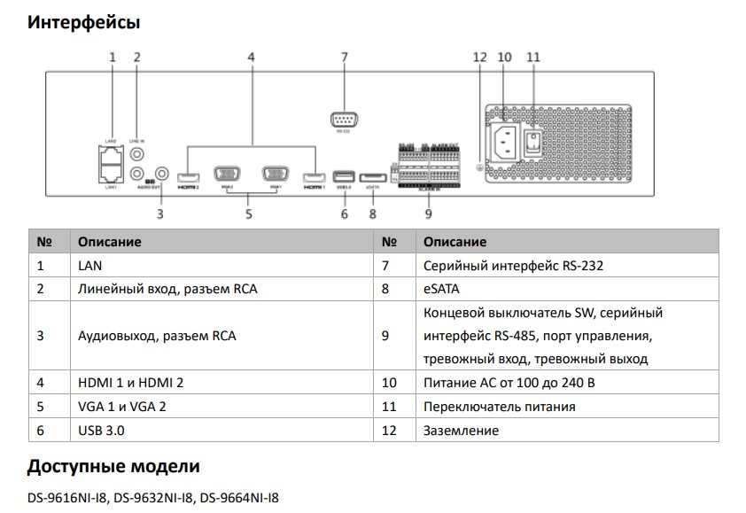 • Декодирующая способность до 1 канала 32 Мп/2 каналов 12 Мп/16 каналов 1080p