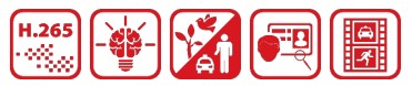 - Стандарт сжатия H.265+: экономия места на диске, снижение затрат на 75 %