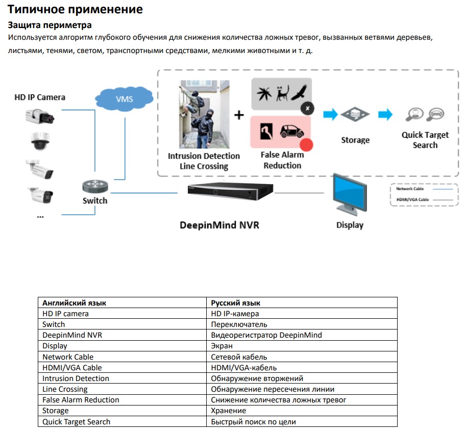 - Настраиваемые интеллектуальные функции камеры, такие как VCA-обнаружение (обнаружение движения, пересечения линии, вторжения и т. д.), тепловые карты, ANPR и подсчет людей