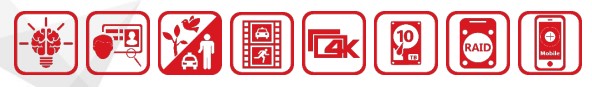 Снижение числа ложных срабатываний Видеоаналитика для распознавания людей и ТС в целях снижения числа ложных тревог: до 96 каналов, 2 Мп (H.264/H.265)