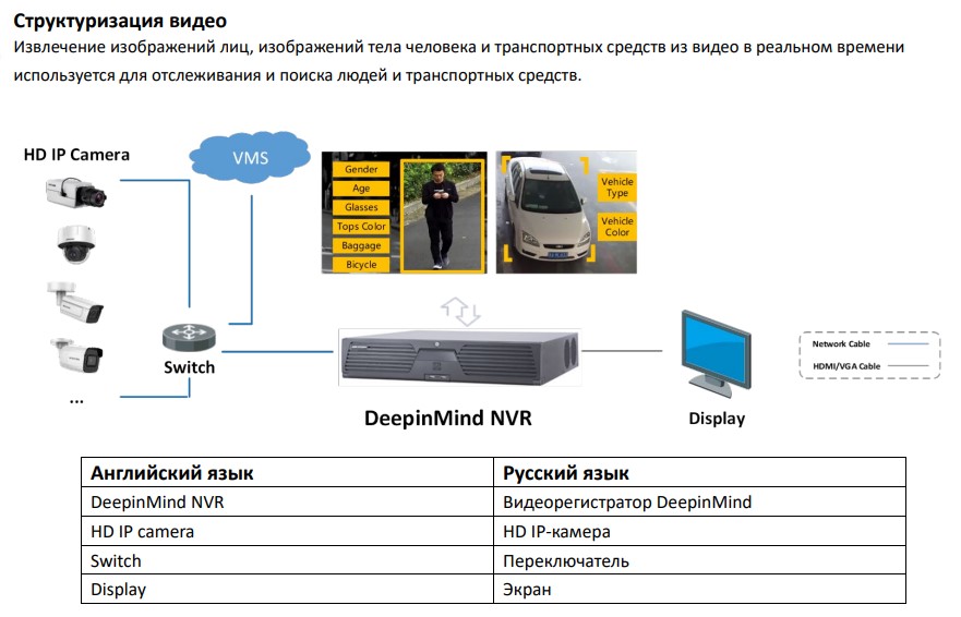 Аналитика структуризации Анализ структуризации видео в реальном времени: до 8 каналов, 2 Мп (HD IP-камера, до 8 Мп, H.264/H.265)