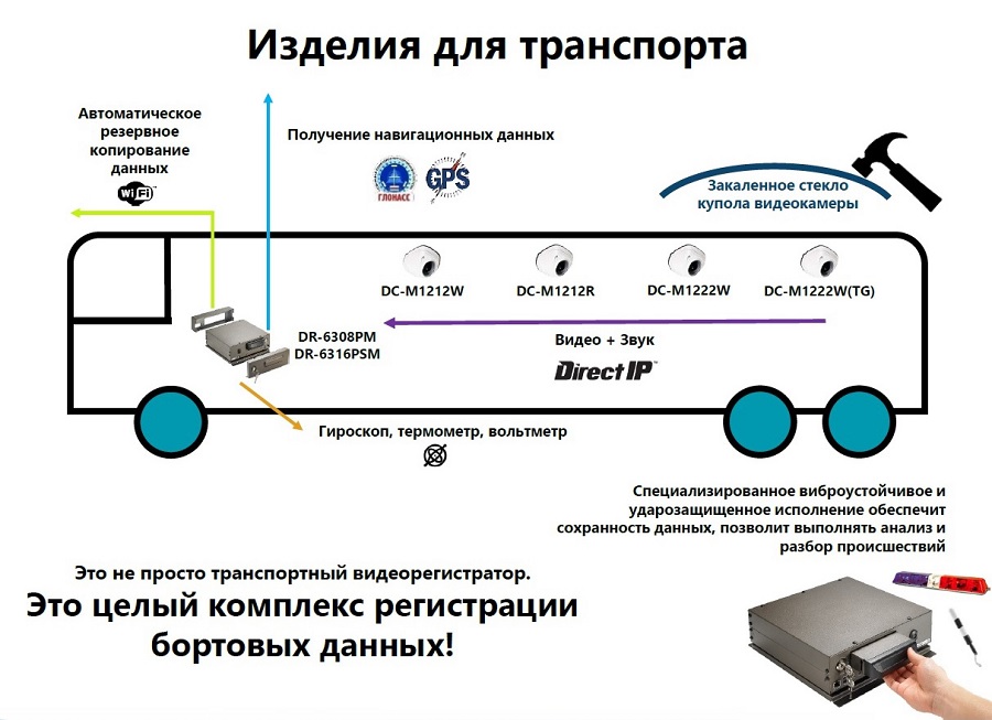 Специализированное исполнение и богатый функционал делают DR-6316PSM отличным инструментом для мобильных систем видеонаблюдения на транспорте.