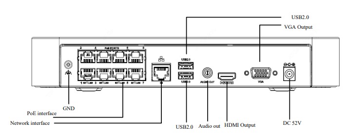 Сетевой 8-ми канальный видеорегистратор с 8-ю PoE портами 30W на каждый порт с максимальной нагрузкой не более 75W. Видеовыходы на внешние мониторы: HDMI/ VGA. Формат сжатия: Ultra 265/H.265/H.264.